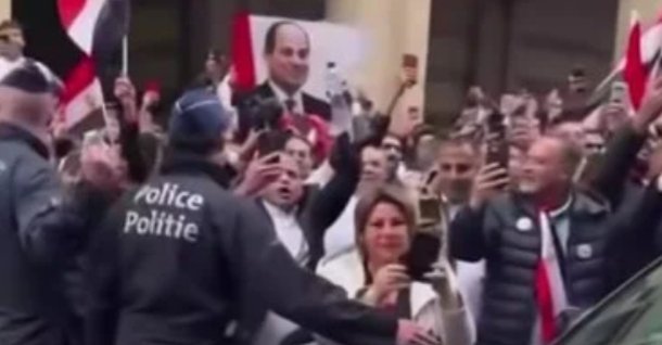 الجالية المصرية في بروكسل تستقبل الرئيس السيسي بأعلام مصر